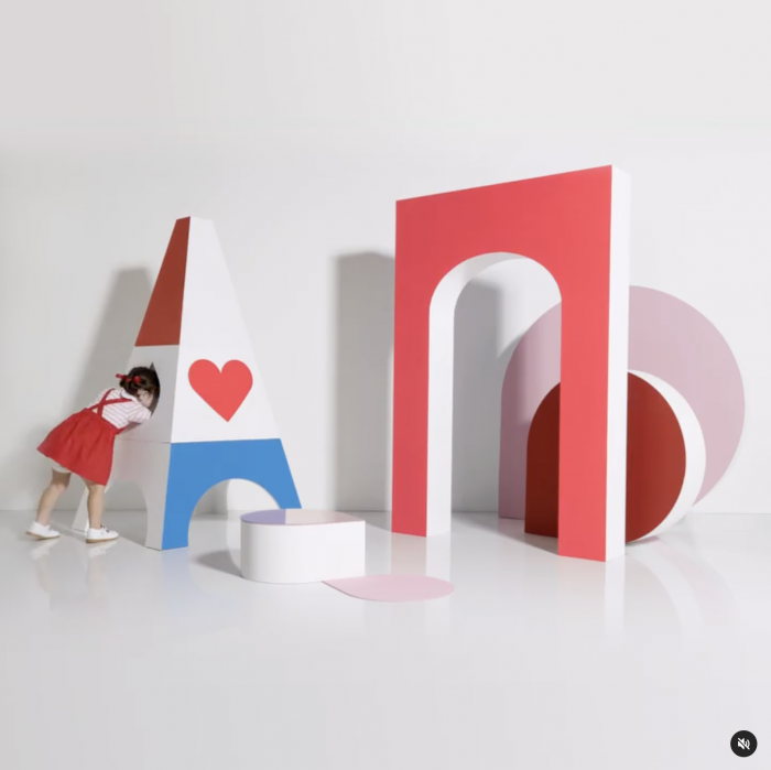 Pour la marque Jacadi, construction de divers socles, mini tour Eiffel, arche...