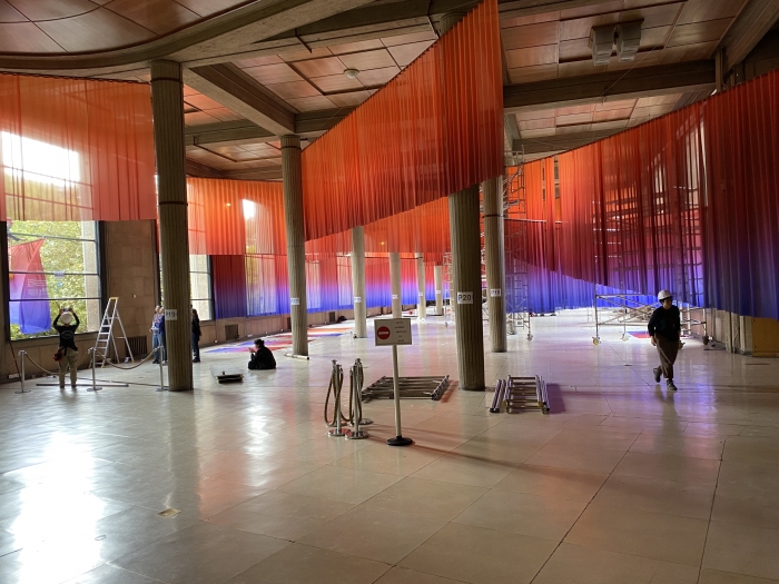 Travail indépendant avec l'atelier de production, Art Composit et une équipe brésilienne pour l'installation de l'exposition Double trouble, au Palais d'Iéna.