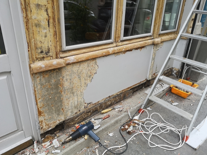Rénovation de la facade en bois du Bistrot Belhara pour le grand chef basque Thierry Dufroux.