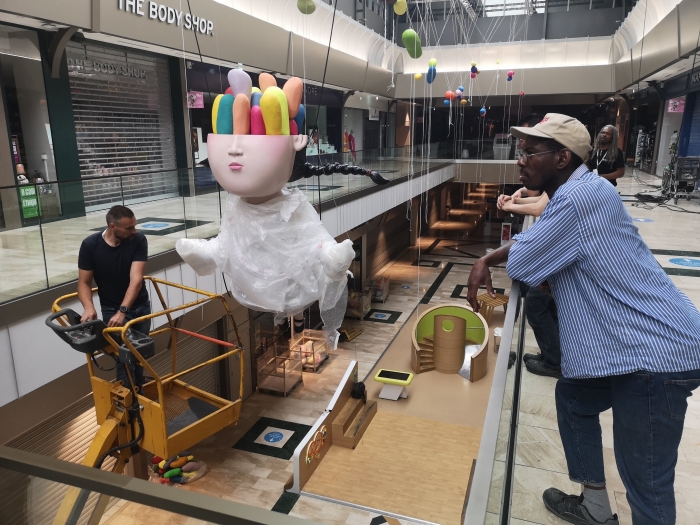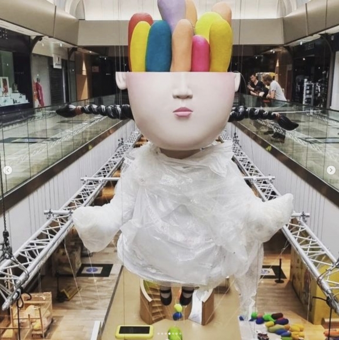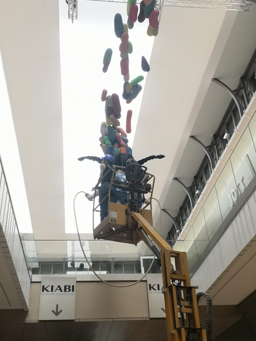 Installation de nuit pour l'artistes @seth_globepainter (et @pascalvilcollet) réalisation de la sculpture @vera.spaeth au centre commercial Val d'Europe.