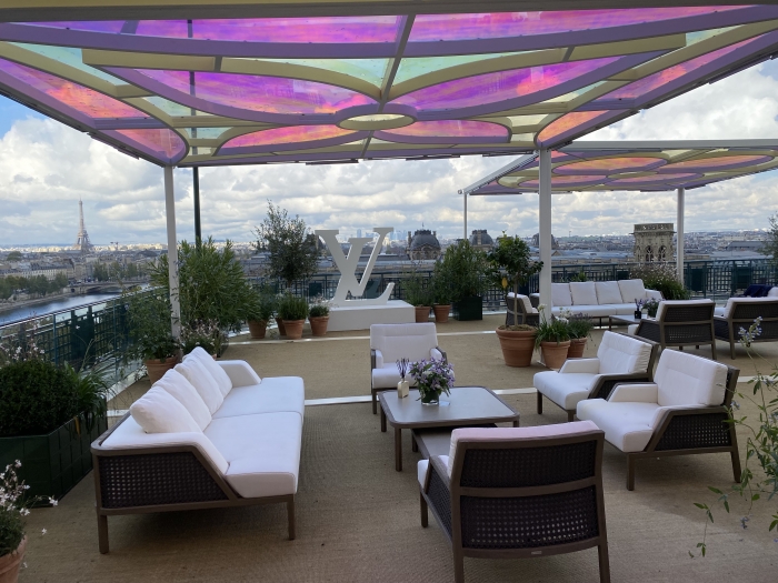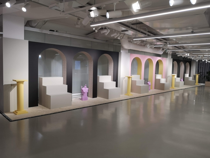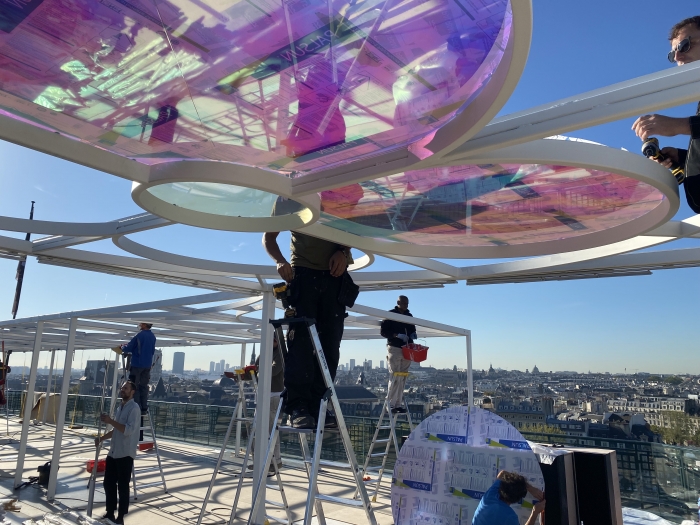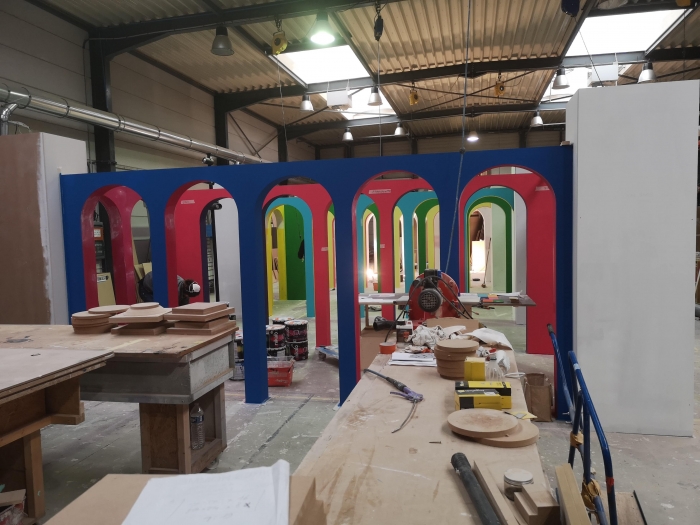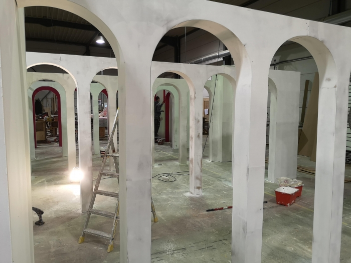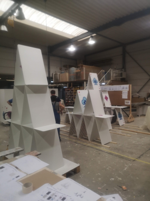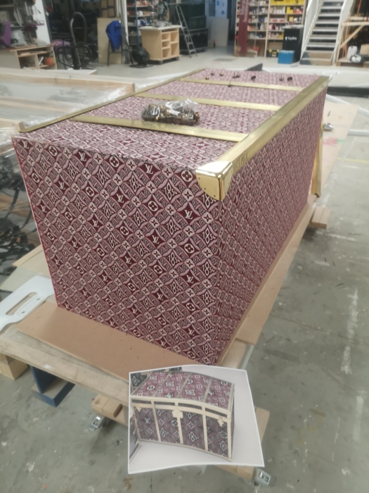 Travail indépendant avec l'atelier de production, Art Composit, pour la production variées de scénographies, podiums pour présenter les nouvelles collections, pergola à l'hôtel Cheval Blanc pour la fashion week, malles Louis Vuitton factices...